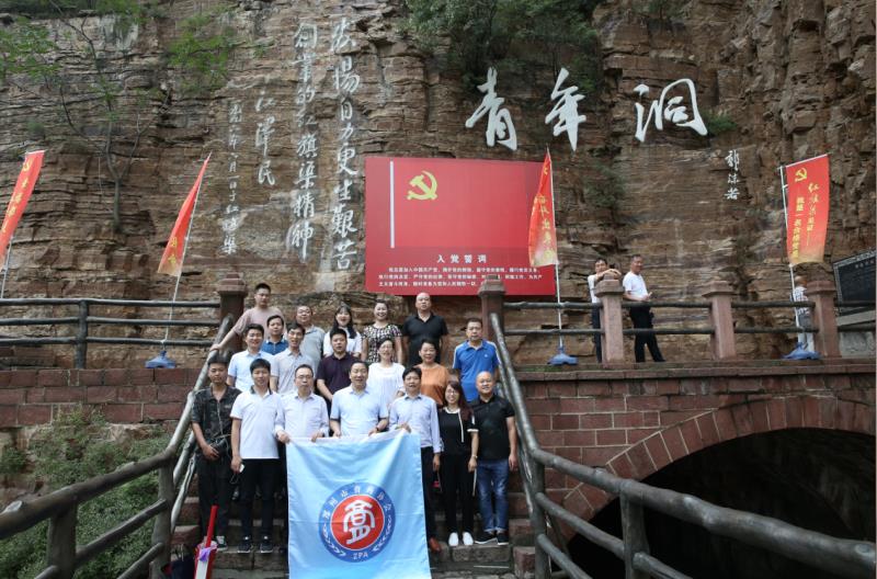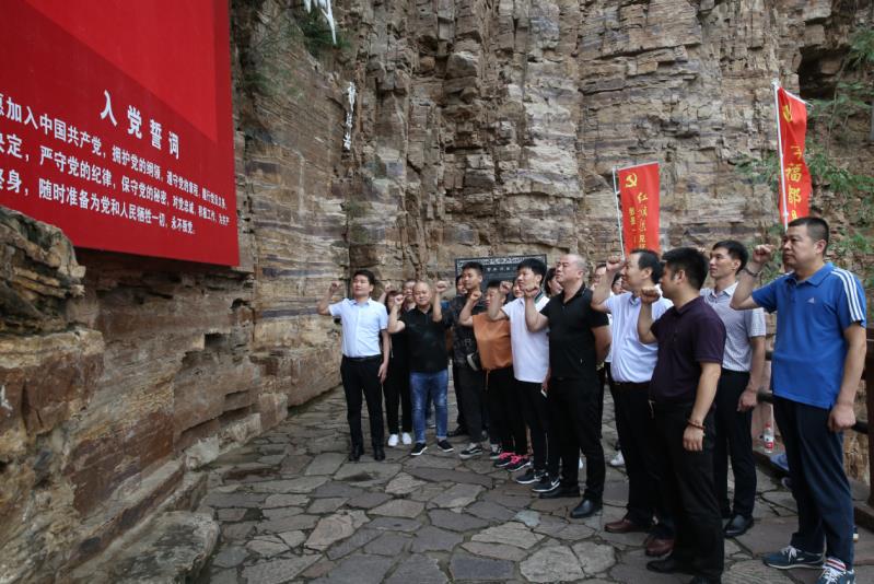 在參觀紅旗渠咽喉工程青年洞前,鄭州市膏藥協(xié)會(huì)黨支部全體黨員在鮮紅的黨旗面前莊嚴(yán)宣誓,重溫入黨誓詞,堅(jiān)定了作為一名共產(chǎn)黨員的精神追求和為黨的事業(yè)奮斗終生的信仰。時(shí)空流轉(zhuǎn),多少人的生命與汗水,凝結(jié)成蜿蜒的巨龍穿山而來(lái),鐫刻在崖壁上的是永不服輸?shù)募t旗渠精神。